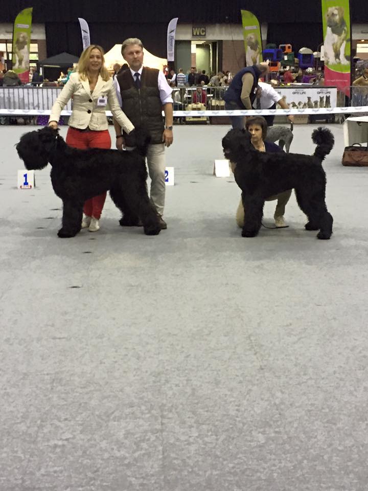 24-10-2015 13:29Nero en Nina stonden ook vandaag in jeugdklas ingeschreven. Ze werden gekeurd door de Oostenrijkse keurmeester Peter Berchtold. Nero behaalde een 2e plaats bij de jeugdreuen. Nina een eerste plaats, ze kreeg het jeugd CAC en werd beste teef!